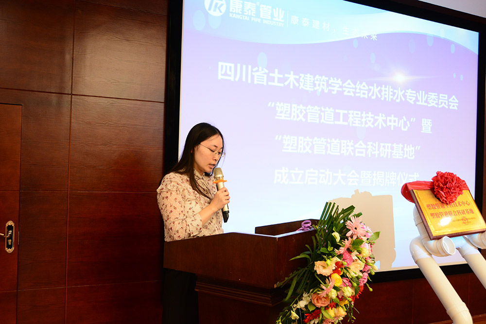 接下來,四川省土木建筑學(xué)會(huì)給水排水專業(yè)委員會(huì)副秘書長龔克娜宣讀了《四川省土木工程學(xué)會(huì)給水排水專業(yè)委員會(huì)“塑膠管道工程技術(shù)中心”暨“塑膠管道聯(lián)合科研基地”管理辦法》。