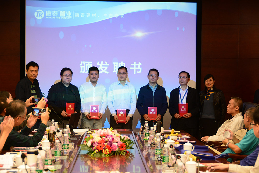在熱烈而友好的氣氛中,各位領(lǐng)導(dǎo)分別為《“塑膠管道工程技術(shù)中心”、“塑膠管道聯(lián)合科研基地”》名譽(yù)主任委員、主任委員、副主任委員、資深專家頒發(fā)了聘書。
