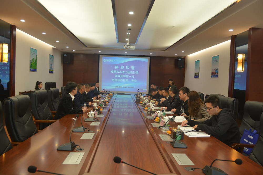 10月23日上午,成都市政工程設(shè)計(jì)院領(lǐng)導(dǎo)、專家一行蒞臨康泰集團(tuán)參觀考察??堤┘瘓F(tuán)銷售總監(jiān)何朝暉,技術(shù)副總監(jiān)朱鵬飛,以及水環(huán)境事業(yè)部葉富熱情歡迎各位領(lǐng)導(dǎo)的到來并進(jìn)行了友好的交流。