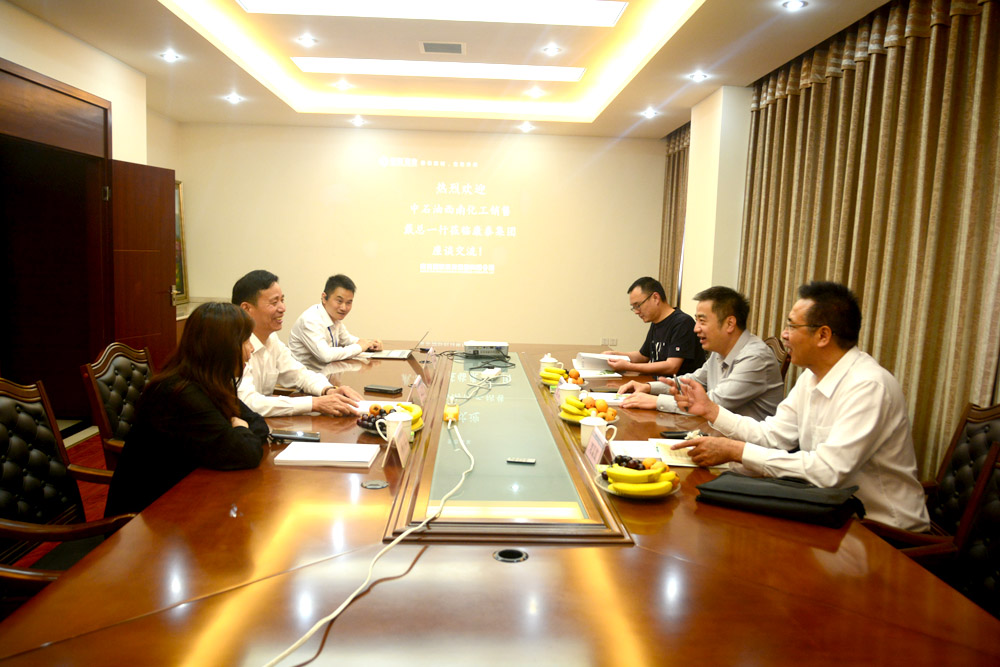 5月26日下午, 中石油西南化工銷售公司新任黨委書記、總經(jīng)理戴永一行蒞臨康泰參觀考察。康泰集團(tuán)董事長(zhǎng)兼總裁林云青,采供總監(jiān)潘云琴熱情接待了各位嘉賓,并就雙方原料采供合作進(jìn)行了座談。