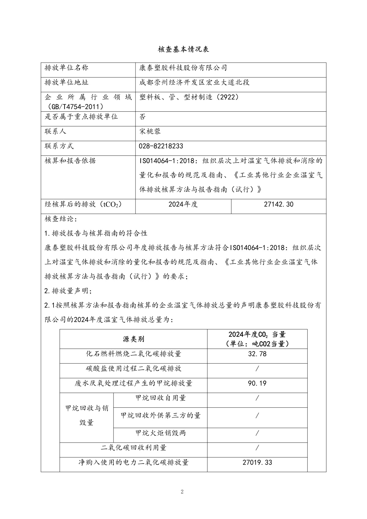 康泰2024溫室氣體核查聲明及溫室氣體核查報(bào)告