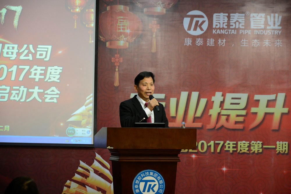 ? ? ? ?會(huì)議最后,在熱烈的掌聲中,林總裁作了重要的講話。林總裁表示,康泰發(fā)展至今,已經(jīng)經(jīng)歷了18個(gè)年頭。經(jīng)過(guò)18年的發(fā)展和積累,在全體員工的共同努力下,公司的規(guī)模和形象不斷擴(kuò)大,市場(chǎng)占有量名列前茅,品牌知名度也得到了大大的提升。在此,對(duì)全體員工的付出表示真誠(chéng)的感謝。林總裁強(qiáng)調(diào),隨著物聯(lián)網(wǎng)的發(fā)展,管道行業(yè)來(lái)到了大洗牌的分水嶺,企業(yè)間的競(jìng)爭(zhēng)越來(lái)越激烈。并且,隨著市場(chǎng)思維的改變,客戶的需求也在調(diào)整和轉(zhuǎn)變。我們必須也要調(diào)整,不調(diào)整就要落后,落后就要挨打。他要求,生產(chǎn)系統(tǒng)的每個(gè)車間一定要做到敢亮劍、敢做第一,產(chǎn)品質(zhì)量第一、生產(chǎn)成本最低第一、車間形象規(guī)范第一,不斷提高生產(chǎn)后勤保障支撐能力,為營(yíng)銷服務(wù)。林總裁最后表示,公司的每個(gè)一個(gè)高層管理者包括我自己在內(nèi),都是一個(gè)后勤支持者,需要我們做的地方,我們一定全力以赴,支持生產(chǎn)系統(tǒng)工作。