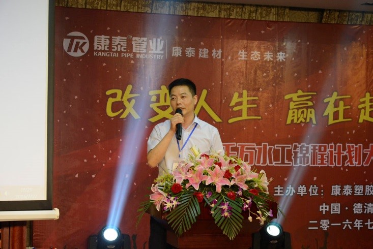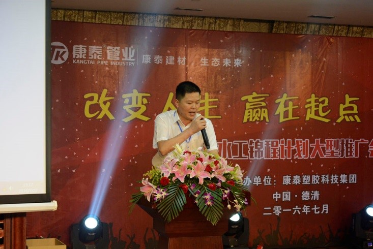 ? ? ? ?會(huì)上,浙江基地總經(jīng)理潘明正首先致詞,代表康泰集團(tuán)對(duì)各位嘉賓的到來(lái)表示熱烈的歡迎和衷心的感謝,并預(yù)祝會(huì)議取得圓滿成功,祝各位水電大師前程似錦,事業(yè)蒸蒸日上。