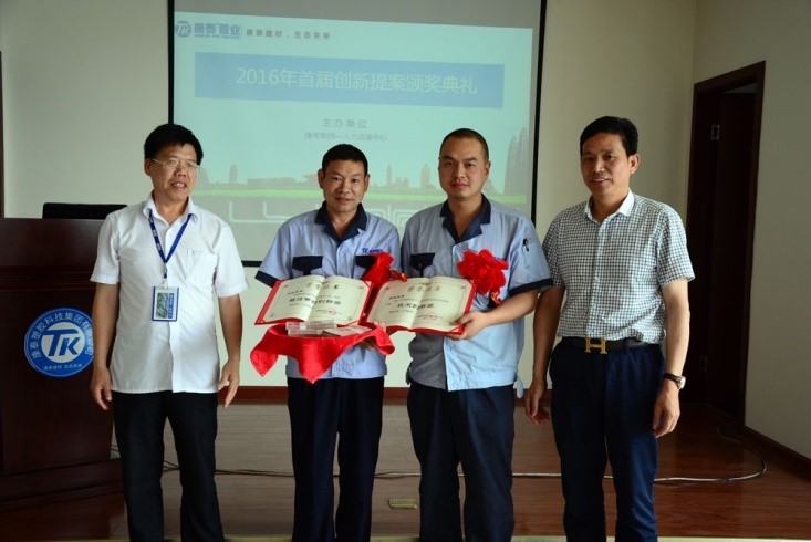 ? ? ? ?會(huì)上,林總裁和生產(chǎn)總監(jiān)洪青成對(duì)線管車間“3號(hào)、4號(hào)自動(dòng)混料機(jī)創(chuàng)新和能源節(jié)約改善”、“3號(hào)、4號(hào)塑料機(jī)由人工改為自動(dòng)化系統(tǒng)”兩個(gè)創(chuàng)新項(xiàng)目進(jìn)行了表彰。獲表彰的線管車間主任羅陽明代表獲獎(jiǎng)單位作了發(fā)言。