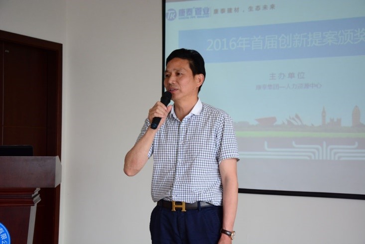 ? ? ? ?創(chuàng)新是一個(gè)民族進(jìn)步的靈魂,是一個(gè)國家興旺發(fā)達(dá)的不竭動(dòng)力;創(chuàng)新也是一個(gè)企業(yè)在現(xiàn)代經(jīng)濟(jì)中不斷發(fā)展的重要組成部分。為了激勵(lì)員工的創(chuàng)新意識(shí),傳遞公司以創(chuàng)新為源動(dòng)力的價(jià)值導(dǎo)向,5月31日上午,“‘創(chuàng)新求變、基業(yè)長青’康泰集團(tuán)首屆創(chuàng)新提案頒獎(jiǎng)大會(huì)”在集團(tuán)培訓(xùn)室舉行。康泰集團(tuán)董事長兼總裁林云青出席典禮并作重要發(fā)言。康泰集團(tuán)各中心總監(jiān)、車間主任及相關(guān)人員等參加了大會(huì)。大會(huì)由人力資源中心主辦,人力資源副總監(jiān)呂旭梅主持大會(huì)。