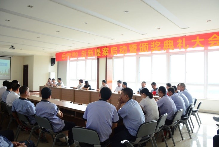 ? ? ? ?上午11時(shí),會(huì)議正式開始。會(huì)上,生產(chǎn)總監(jiān)洪青成首先致辭,全方位闡述了創(chuàng)新與生產(chǎn)的關(guān)系。隨后,人力資源副總監(jiān)呂旭梅對(duì)生產(chǎn)系統(tǒng)創(chuàng)新獎(jiǎng)的激勵(lì)政策進(jìn)行了講解。根據(jù)激勵(lì)政策的規(guī)定,康泰集團(tuán)創(chuàng)新激勵(lì)政策運(yùn)行周期為一年,評(píng)選項(xiàng)目主要包括新材料引進(jìn)、配方優(yōu)化、技術(shù)革新、管理創(chuàng)新四方面。所有參評(píng)項(xiàng)目自行申報(bào),并經(jīng)由評(píng)審小組審核通過后給予表彰激勵(lì)。此外,每個(gè)項(xiàng)目還將按照實(shí)際達(dá)成的效果,按照比例給予正激勵(lì)。