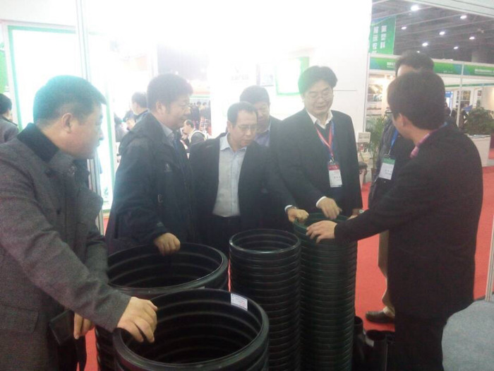 ?????? 康泰集團在本次展會中,展出了集團新研發(fā)的五款新產品:環(huán)保MPE、MPVE?排污管道系統(tǒng)、PP超靜音排水、排污管道系統(tǒng)、HDPE同層排水管道系統(tǒng)、加強型漩流降噪特殊單立管道系統(tǒng),深受中塑協(xié)專家、領導、塑料行業(yè)精英們的高度關注和好評,張總熱情洋溢的接待各位展客,并就產品的材料、技術、生產設備展開尖峰思想交流與碰撞。整個展會人頭攢動,場面火爆。