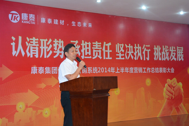 ? ? ? 7月11日8:20,母公司營銷系統(tǒng)全員個個精神飽滿、神采奕奕,在高亢激昂的《康泰之歌》中開啟全天總結(jié)匯報會議,成都、四川、重慶、云南、西安商務(wù)部、網(wǎng)絡(luò)部、市政部、家裝事業(yè)部、型材事業(yè)部、大客戶部十個團(tuán)隊,分別就2014年上半年度工作總結(jié)、下半年度工作規(guī)劃作出匯報。最后由營銷中心何朝暉總監(jiān)作營銷中心上半年度總結(jié)、下半年度形勢分析和工作規(guī)劃部署,何總首先對各團(tuán)隊負(fù)責(zé)人的工作匯報和規(guī)劃作一對一的詳細(xì)點(diǎn)評和指導(dǎo),并在總結(jié)中說道:“上半年營銷中心全員團(tuán)結(jié)一致、全力以赴,完成了上半年度的目標(biāo),可喜可賀。但要清醒看到房地產(chǎn)市場重大拐點(diǎn)的嚴(yán)峻形勢,完成下半年銷量指標(biāo)充滿挑戰(zhàn),要求營銷系統(tǒng)全員統(tǒng)一思想,堅定以認(rèn)清形勢、承擔(dān)責(zé)任、堅決執(zhí)行、挑戰(zhàn)發(fā)展的思路,將每項工作落到實處,奮力拼搏爭取圓滿完成下半年經(jīng)營指標(biāo)” 。