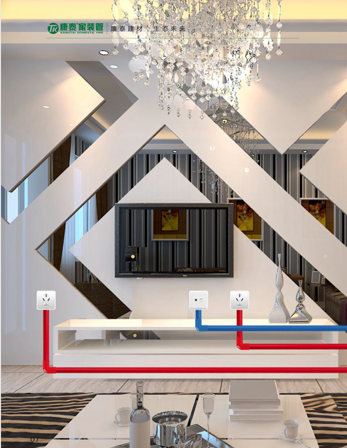 康泰家裝紅藍阻燃絕緣電工套管嚴(yán)格執(zhí)行國家建設(shè)部門行業(yè)標(biāo)準(zhǔn)JG3050-1998《建筑用絕緣電工套管及配件》,采用“強電用紅管,弱電用藍管”的穿線管道設(shè)計,方便分清電壓強弱,避免電磁干擾,影響通行。