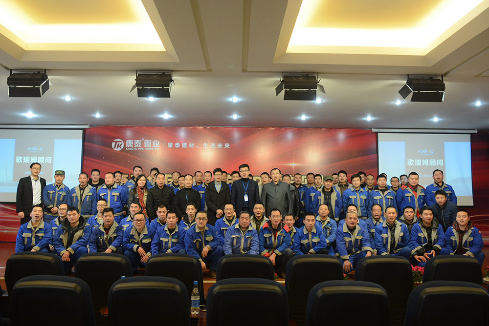 1月 11日下午,康泰集團TPM項目結(jié)題大會在五樓多功能會議室召開。歌瑞姆管理技術服務有限公司董事長后小進、顧問劉大永,以及康泰集團副總裁張文霖,總裁助理張勇,生產(chǎn)中心副總監(jiān)李志堅,各車間主任、副主任、班組長、TPM項目組成員等80余人參加會議。