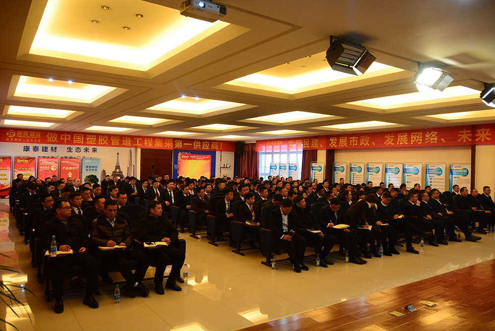 在全場熱烈的掌聲中,林總裁上臺作了熱情洋溢的新年致辭和動員講話。林總裁首先對集團公司在2018年取得的優(yōu)異業(yè)績向全體銷售人員的付出表示了感謝。林總裁表示,康泰的發(fā)展定位就是做中國工程集采第一供應商,2019年是充滿挑戰(zhàn)的一年,也是為實現(xiàn)三年目標打基礎(chǔ)的一年。我們要充分發(fā)揮三駕馬車——發(fā)展民建、發(fā)展網(wǎng)絡(luò)、發(fā)展市政的優(yōu)勢,切實做到品牌強大、技術(shù)強大、網(wǎng)絡(luò)強大、團隊強大,提升公司的核心競爭力。