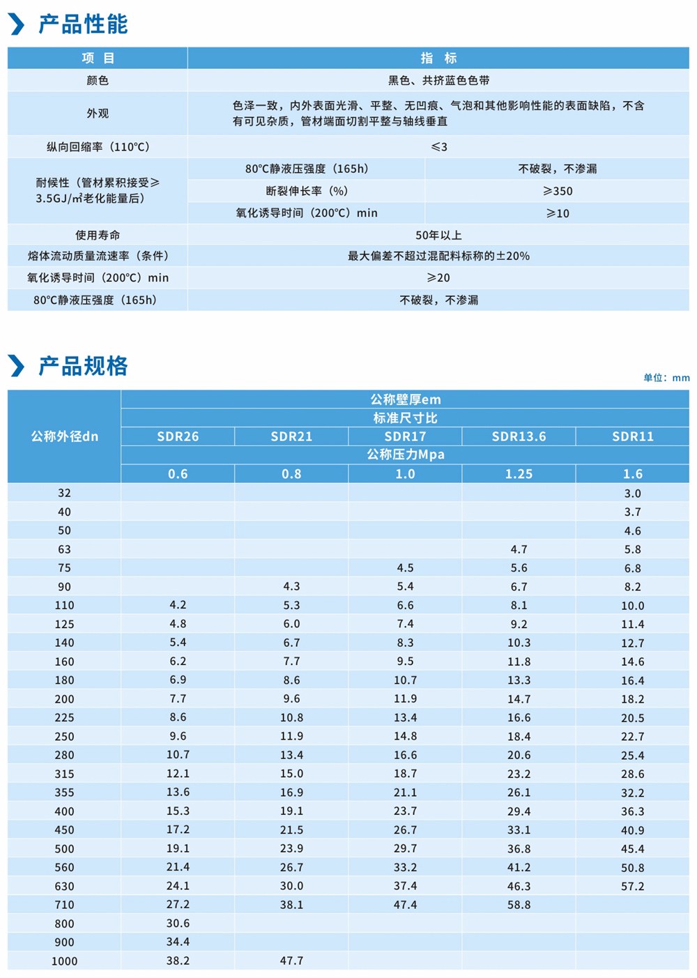 生產(chǎn)標(biāo)準(zhǔn):GB/T13663-2000(管材) GB/T13663.2-2005(管件)